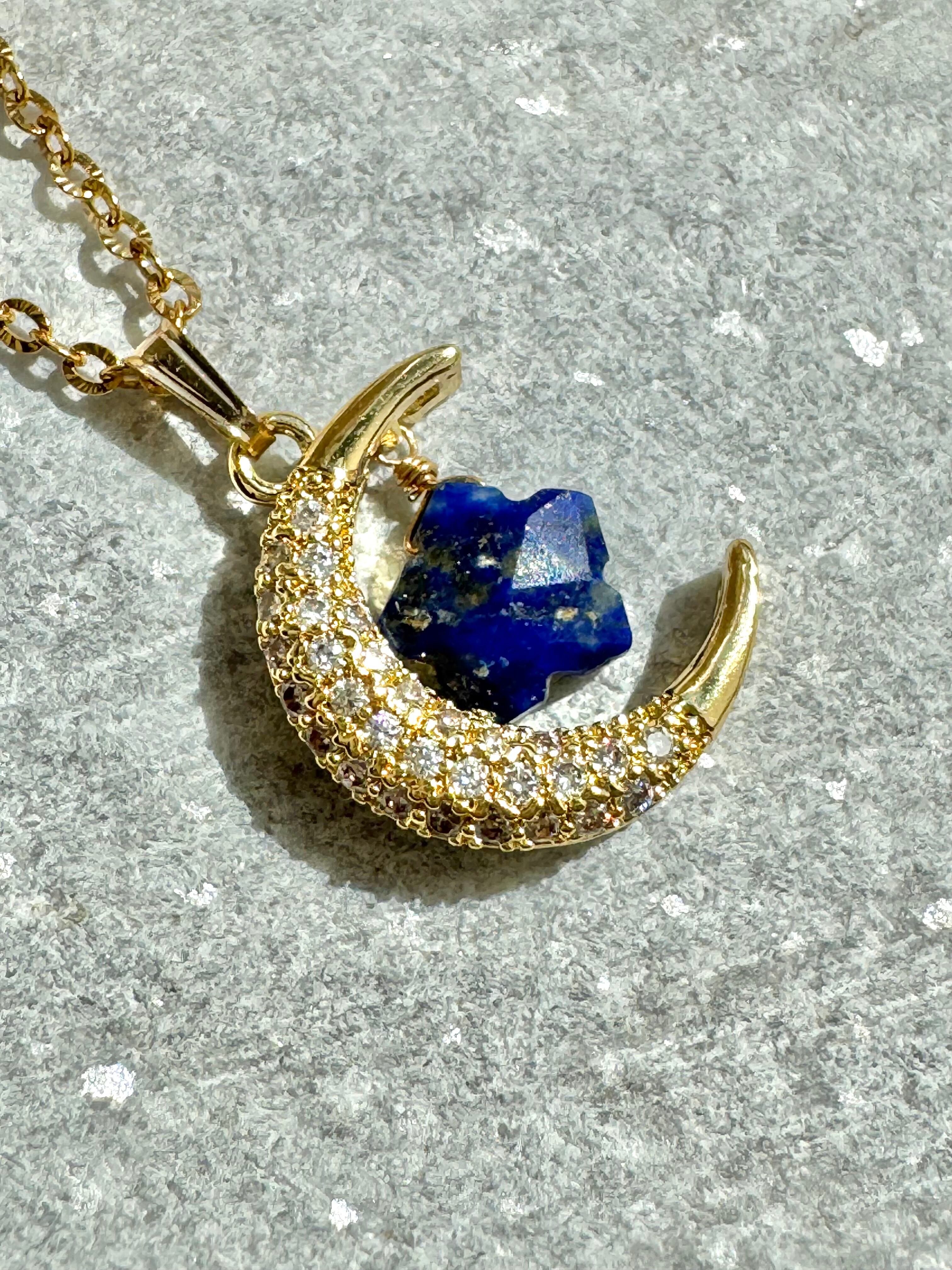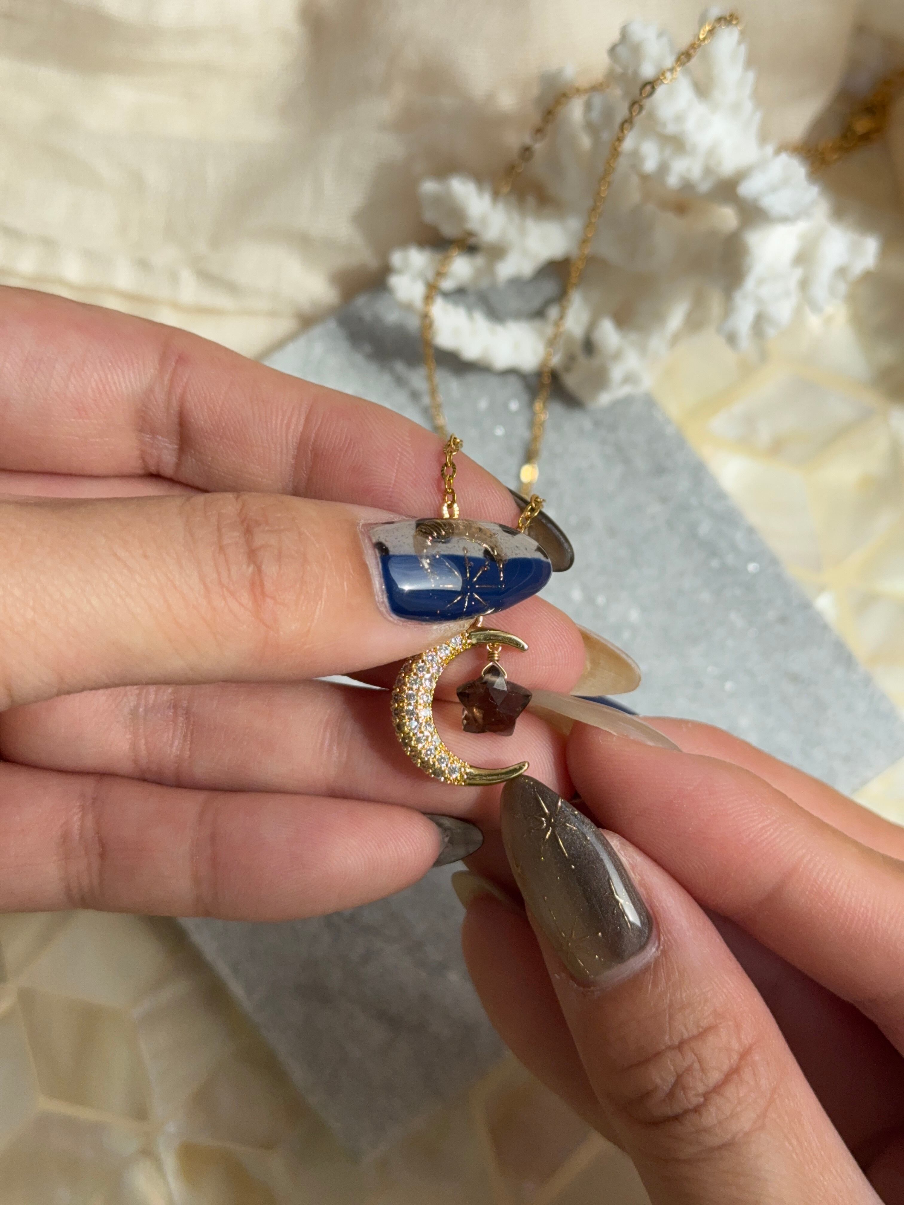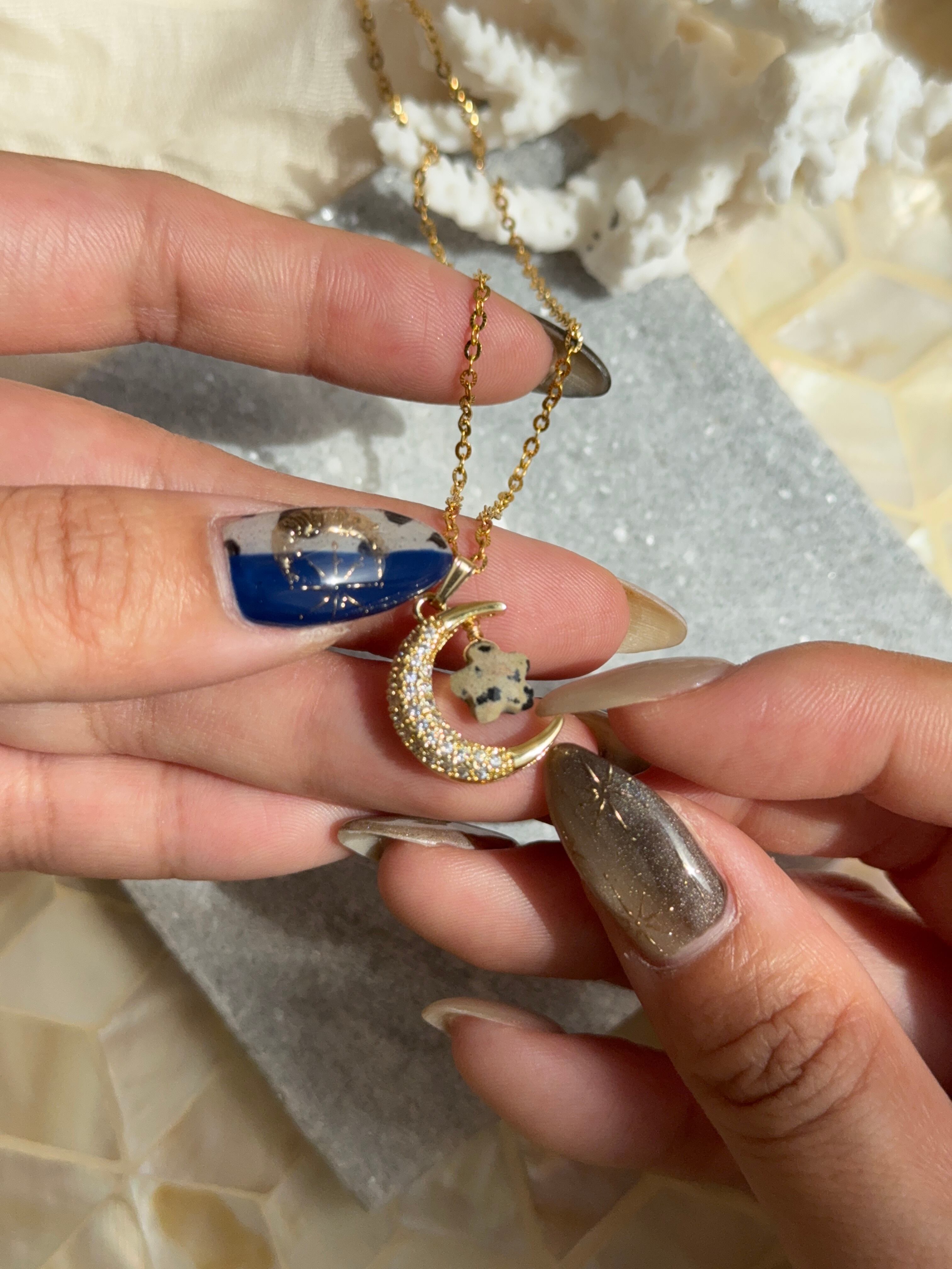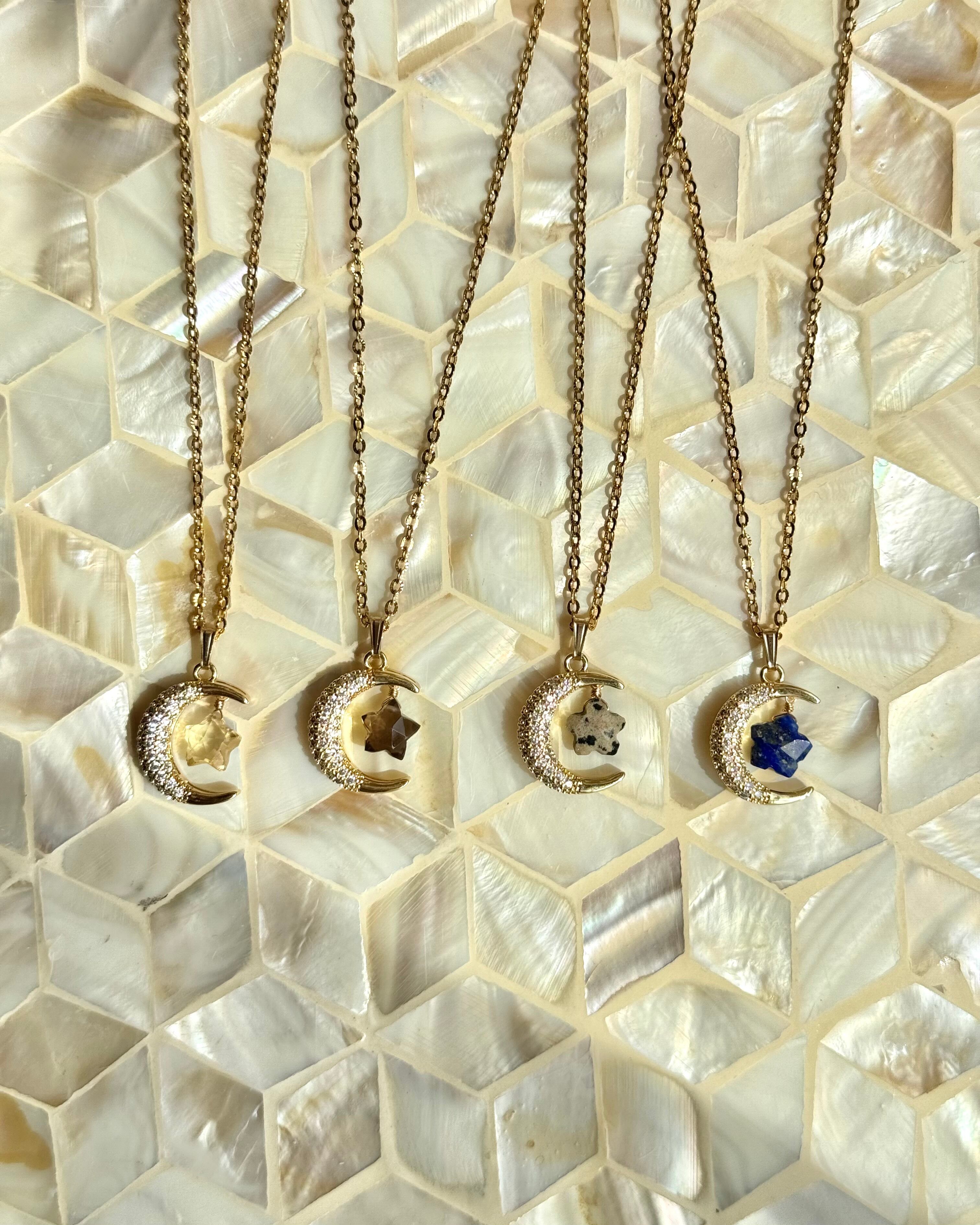 月と星ネックレス 選べる天然石 ラピスラズリ ダルメシアンジャスパー スモーキークォーツ シトリン