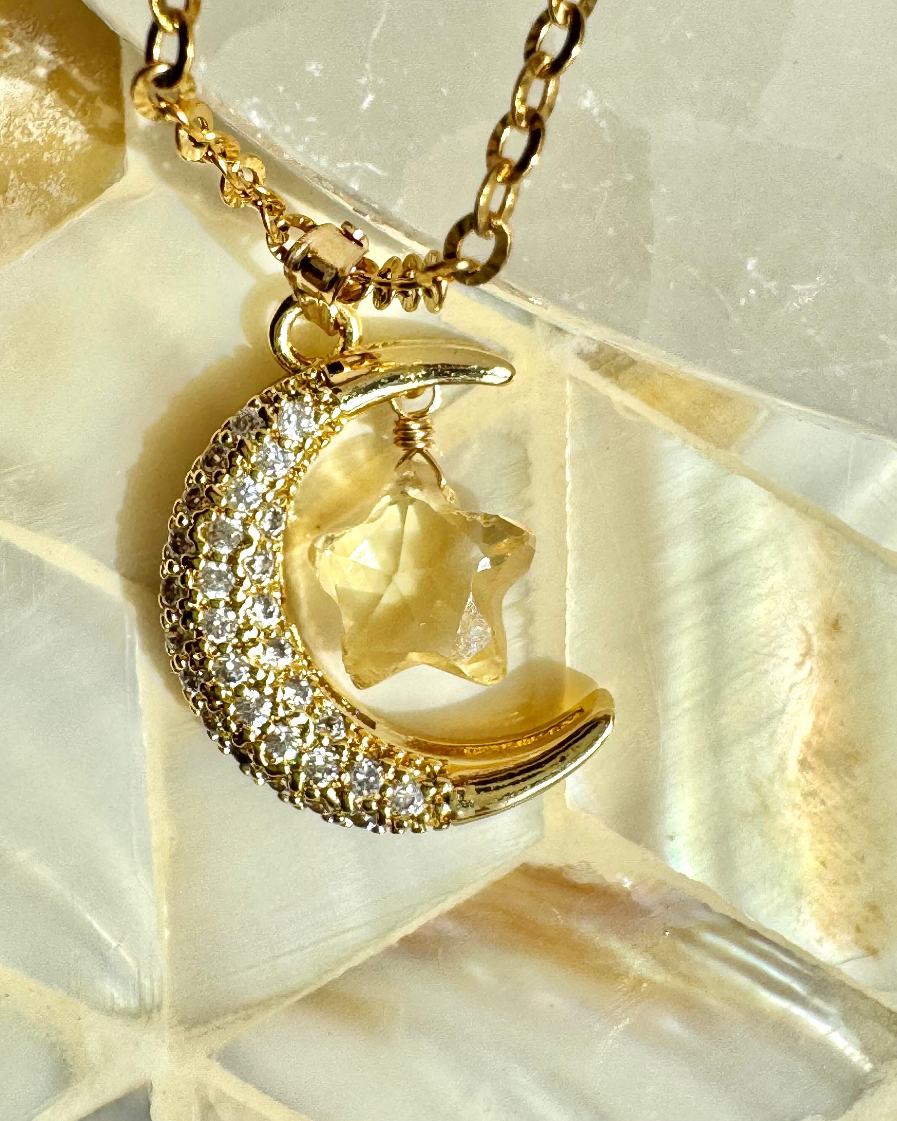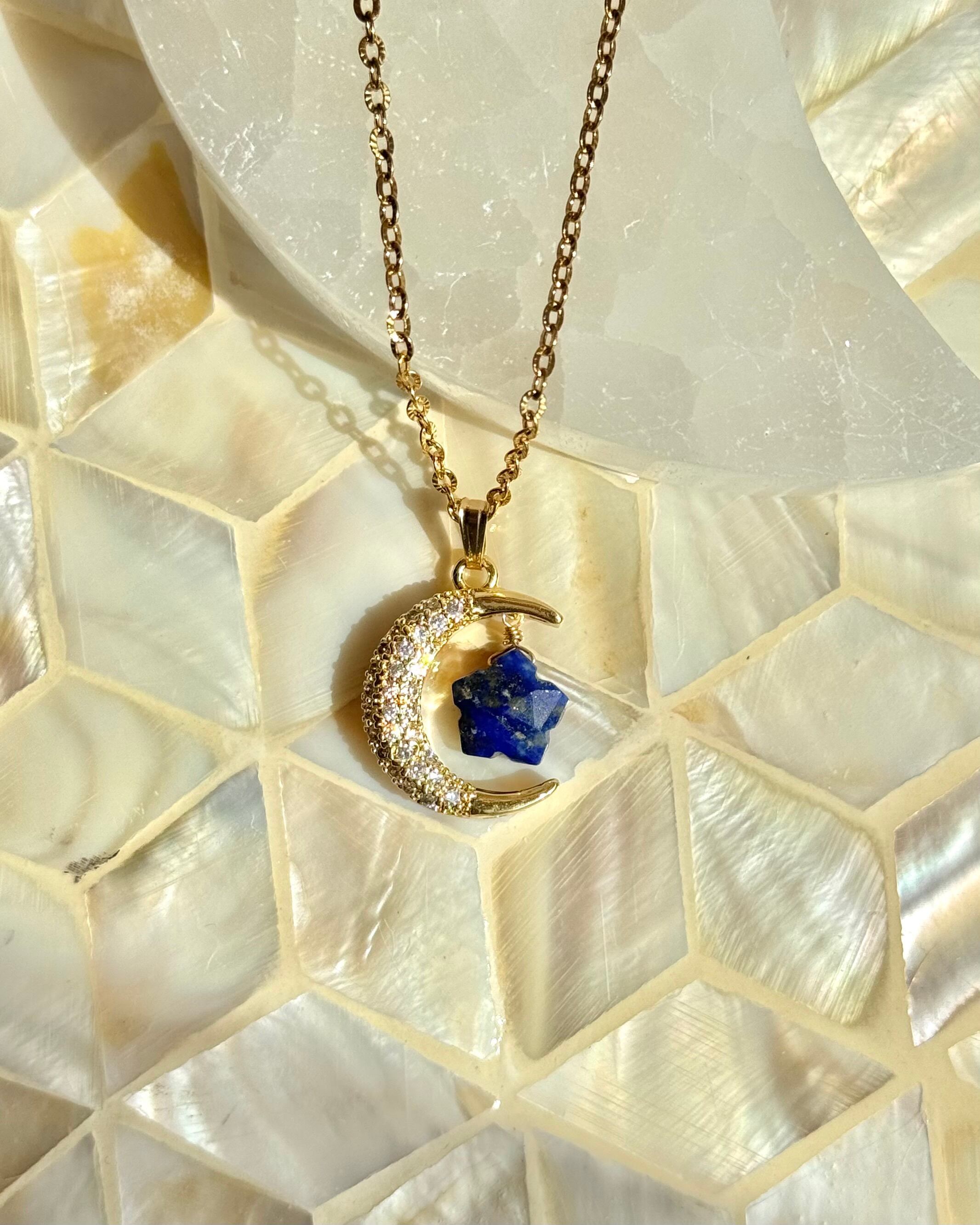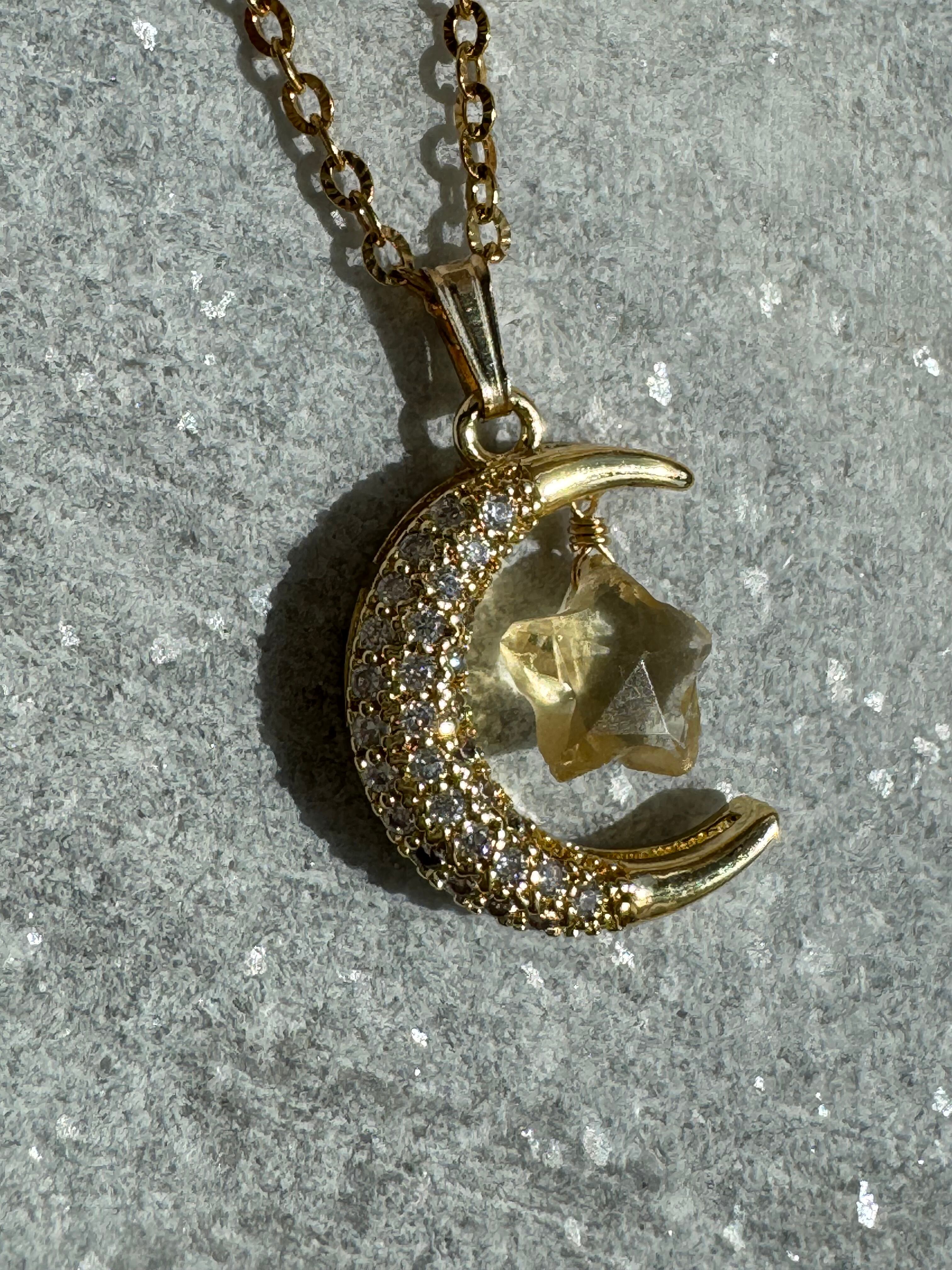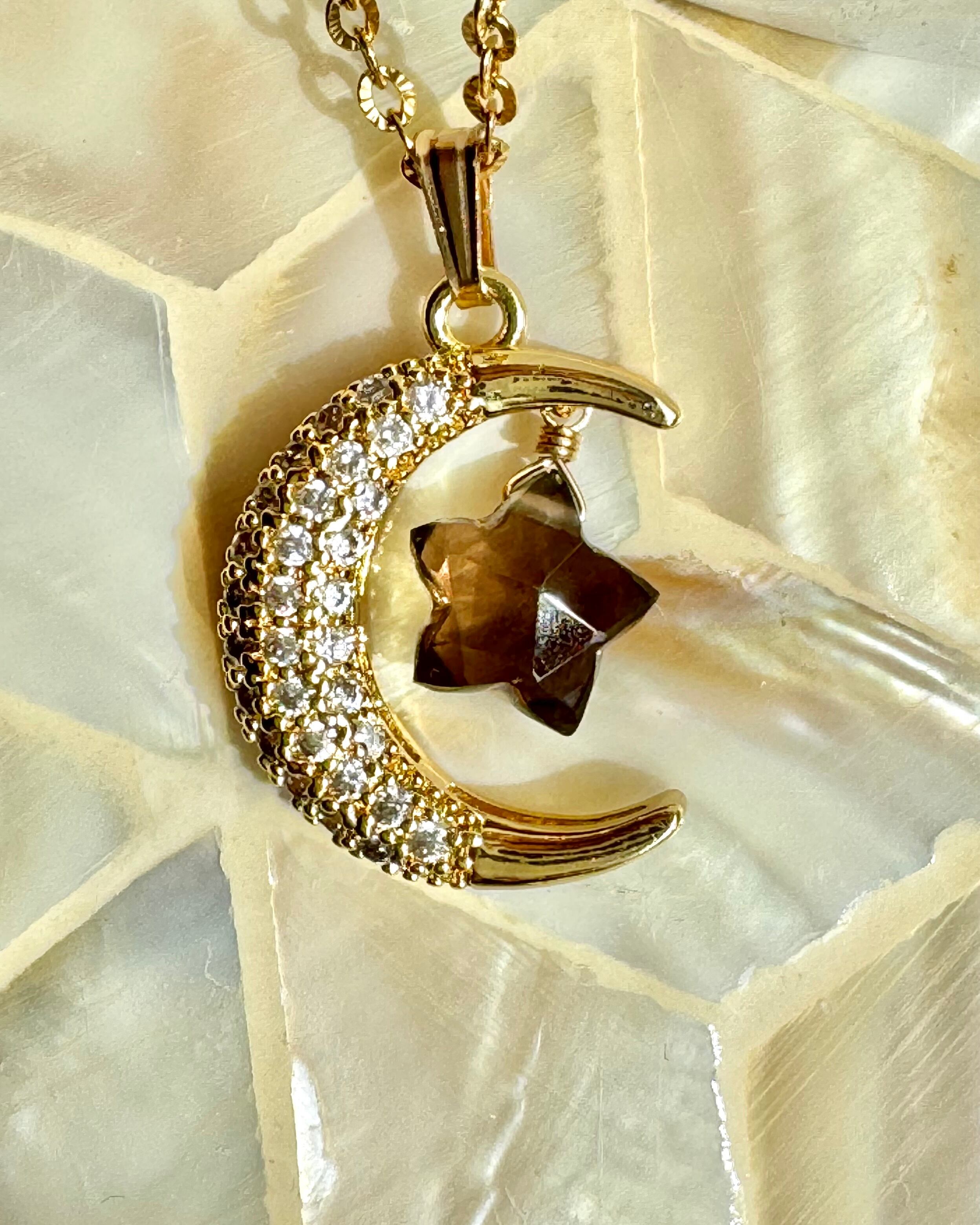 月と星ネックレス 選べる天然石 ラピスラズリ ダルメシアンジャスパー スモーキークォーツ シトリン