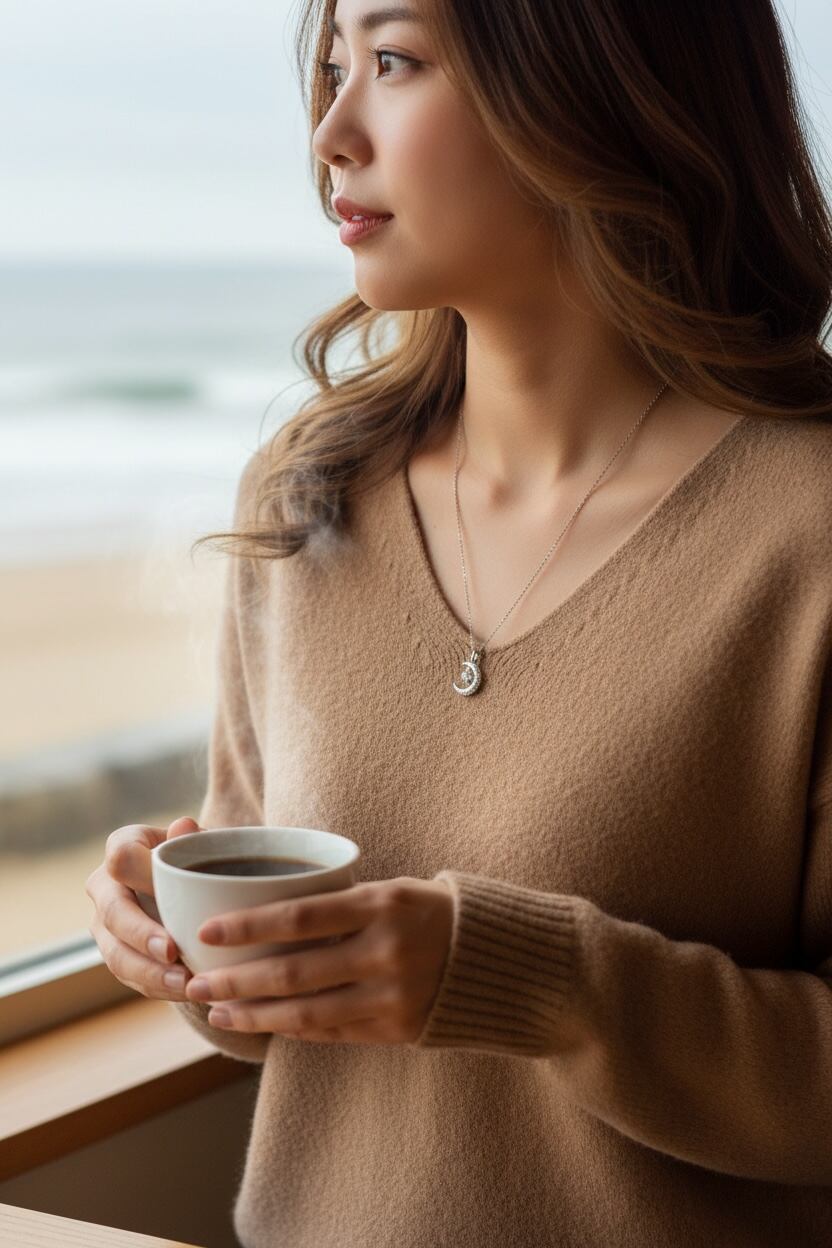 シンプルな装いにも映えて